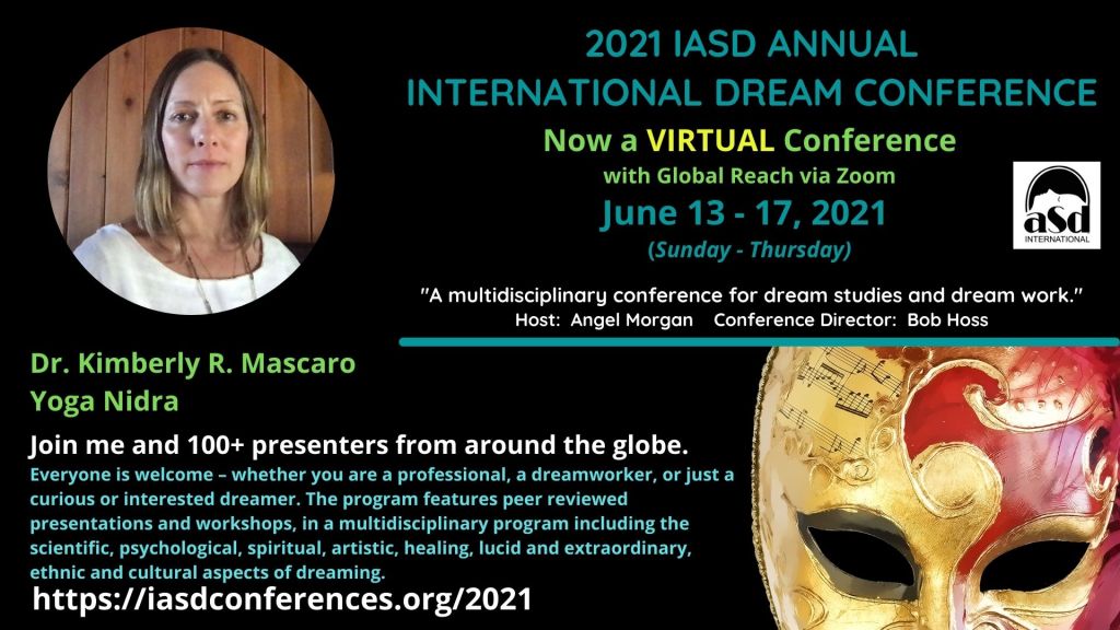 You may already be familiar with the International Association for the Study of Dreams (IASD). If not, please check them out! I’m so excited to be presenting at the IASD conference again this year, only this time the conference is virtual. This allows those to attend from anywhere in the world without the time and cost of travel and lodging, so long as there is a decent internet connection. I hope this year is accessible to you and you are able to attend. I’ll be leading a Yoga Nidra workshop on Sunday, June 13th. This sleep-based meditation supports relaxation, focus, and of course, dreaming.